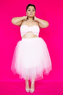 "Be Mine" Bandeau I was obsessed! From the baby pink, to the style, even the models she used were the BOMB! I love designers who make clothes for plus size women that are revealing, sexy, and shows that we too can rock a crop top or bandeau.